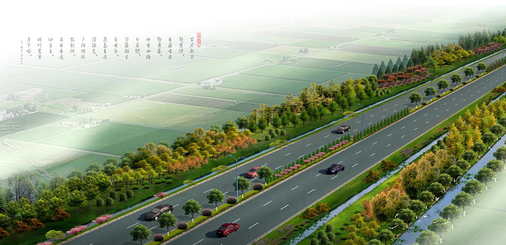 蘇北灌溉總渠-規(guī)劃金湖至馬壩高速公路農(nóng)田村莊段效果圖