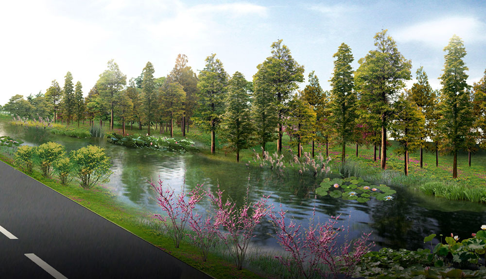 蘇北灌溉總渠-規(guī)劃金湖至馬壩高速公路水塘溝渠段效果圖